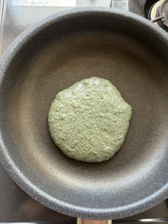 私はヨモギの粉末を見つけて、ホットケーキに混ぜて作ってみました。ヨモギの粉末はお菓子コーナーや道の駅にもあって、お団子や草餅にも入れます。粉の分量は適当に加減しながら作りましたが、美味しかったです。