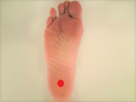 場所は足のかかとの真ん中です。ツボは左右両方にあります。温めるとなお効果的ですのでお灸が最適です。
