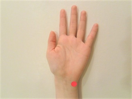 場所は手首のシワから自分の指3本肘側で、腕の真ん中にある2本の腱の間です。心がなんだかスッキリしないときや、不安感が強いとき、思っていることを口に出せずにもやもやしているときなどにおススメです。