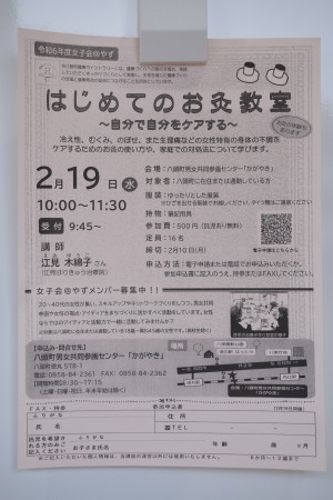 鳥取市、八頭町、若桜町、智頭町でお灸教室を開催したいと思っています!