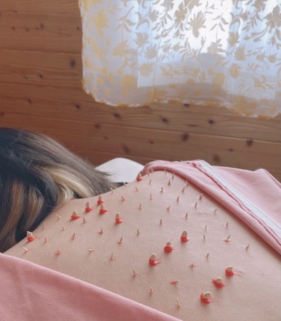 首から背中を中心に、全身にお灸を据えさせていただきます。ぽかぽか心地良いお灸で、日々の疲れや体の不調を整えるお手伝いをさせていただきます。眠りのお悩みや冷えでお困りの方は、是非お試しください。