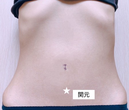 続いては、おへそから指4本分ほど下がったところにある関元(かんげん)です。お灸がなければ、このあたりをカイロなどで温めてください。火を使わないお灸「太陽」を貼っておくのもおすすめです。冷えも改善してくれます。