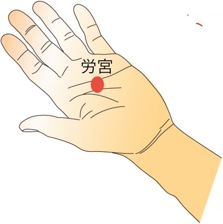 心包経(しんぽうけい)という、精神機能を司る経絡(身体にあるエネルギーの流れ)にある労宮(ろうきゅう)です。