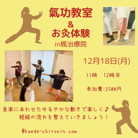 12月18日(月)には、気功とお灸のコラボレッスンを開催します。