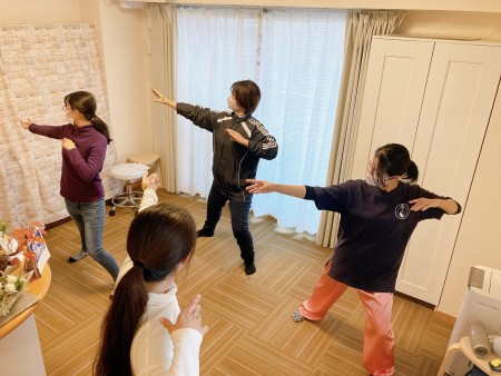 音楽にあわせてツボのある経絡の流れを意識した動きをします。また、ツボ解説や、火を使わないお灸「太陽」を体験していただきます。