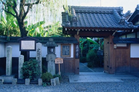 芭蕉は近江を何度も訪れ、この地の歌を約90句残し、多くの門人を輩出しています。今回ご紹介する義仲寺でも句会を開いたとされます。義仲寺は滋賀県の膳所にあります。この寺は粟津の戦いで戦死した木曽義仲を愛妾の巴御前が祀り、創建されたとされます。芭蕉は死後、義仲の墓の裏に埋めて欲しいと弟子に託し、その遺言の通り、芭蕉唯一の墓があります。他にも、境内には芭蕉の句碑や、芭蕉を祀った翁堂には伊藤若冲の天井画があるなど、小さなお寺ではありますが見どころがあります。