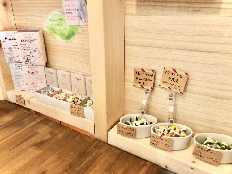 熱さの違うお灸や、煙や臭いの少ないお灸、アロマの香り付きのお灸など、色々な種類のお灸を販売しています。