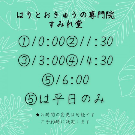 | 施術内容 | 鍼灸施術・美容はり・子宝&妊活鍼灸・マタニティ鍼灸・小児はり・お灸・やいと |