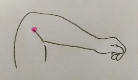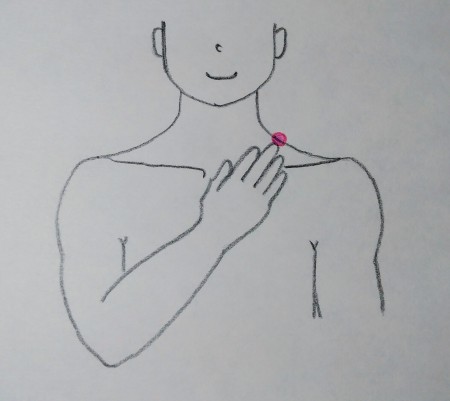 肘を胸につける→中指先端のあたる部分。