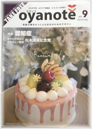 うっかり紹介しそびれていましたが、2024年9月に北九州市で配布されているフリーペーパー(おやケア情報誌)は【oyanote(オヤノテ)】になりました。「親の手」という読んで字の如くの意味と「親note(おやケアのために必要なことをしたためるノート)」という、ダブル・ミーニングのタイトルが、お世辞抜きで素晴らしい!