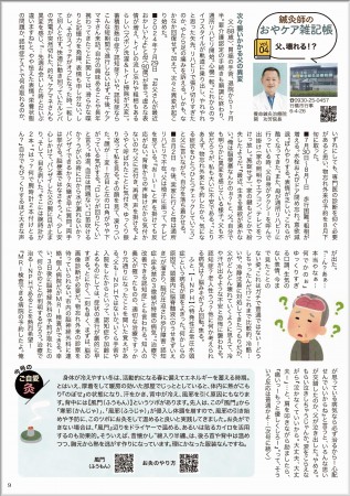 まず、9号での担当ページは本誌の特集と連動させ『認知症予防』の効果が期待できるツボを解説。