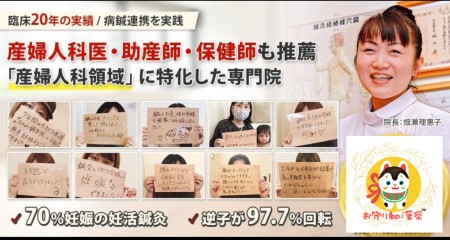 女性専門 産婦人科領域 病鍼連携鍼灸院臨床歴20年の中でのべ2000例の妊娠成立に関わってきました。