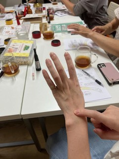 この日の参加者さまはモノ作りをしている方とセラピストさん。ツボを探してお灸する姿はだんだん職人顔に。けれどしばらくたつと「あっ!(ツボ)分かったかも!!」「私こうなりたいからこのツボで良いですか?」とまた賑やかな声と笑顔が戻ってきました。