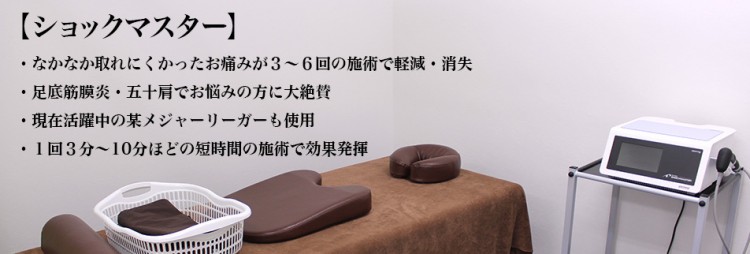 ショックマスター慢性腰痛、シンスプリント、その他なかなか良くならないお痛みにお悩みの患者様にご好評いただいております。