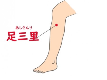 足三里(あしさんり):胃腸を整え、疲労回復に。