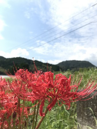 すっかり金色になった稲穂、青空に映える彼岸花。