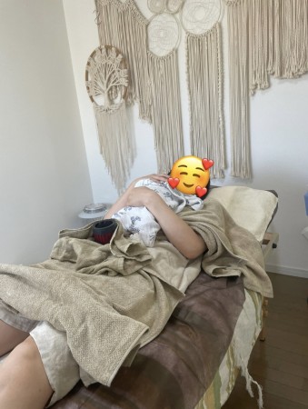 *写真は赤ちゃんを抱っこしながら産後ケア鍼灸中のママです♡