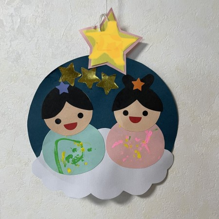 写真は1歳の娘がこども園で作ってきた(ほぼ保育士さんのお手製ですが)七夕飾りです。