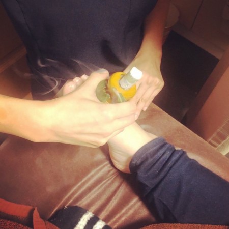 私は【ていしん】と呼ばれる刺さない鍼を使って全身の気を整え、下半身は冷えやすいのでせんねんきゅうの熱さレベルの強い物を。人によっては「箱灸」もお腹や腰に使います。そして、足の裏に【びわの葉温灸】をしています。
