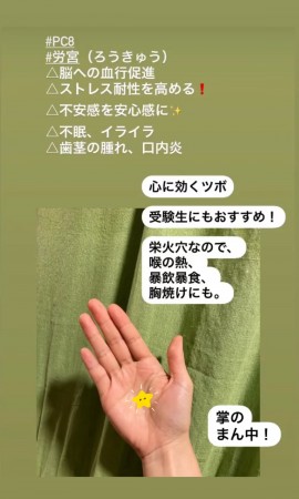 ・緊張を和らげるツボとして 労宮