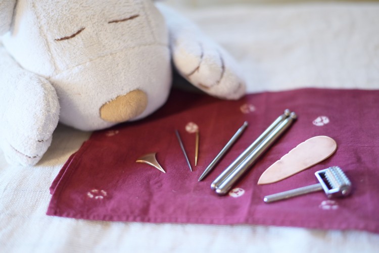 刺さない鍼で優しく撫でたりこすったりする小児はり。