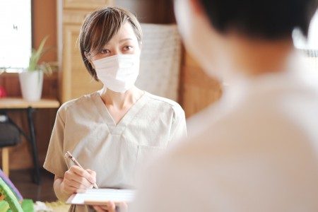 時間をとり来て頂いた患者様の身体状態を的確に把握するべく、舌や脈、お腹、皮膚の状態を観察しながらお話を伺います。