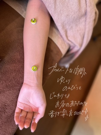 頭鍼の置鍼時に、腕のマッサージをCBDオイルで体験いただけます。お気軽にお声掛けください。