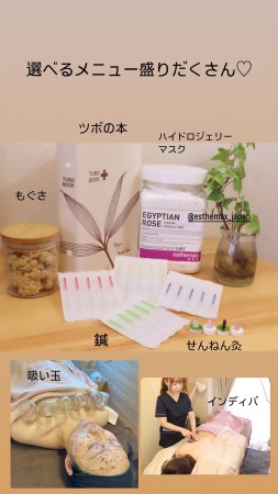 | 施術内容 | 鍼治療・灸治療・インディバ・吸玉(カッピング)・ドライヘッドマッサージ |