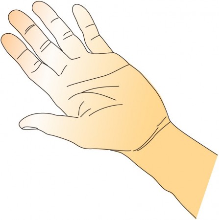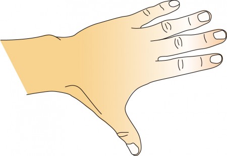 手のひらを軽く握り、手前に傾けると、二本の筋が現れます。