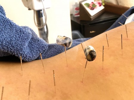 腎兪(じんゆ)という腰のツボ、次髎(じりょう)という仙骨の上のツボをお灸で温めます。