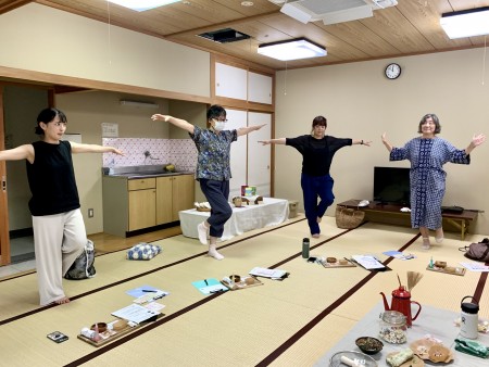 今回は、もぐさ作りとせんねん灸の使い方にプラス、「呼吸とストレッチ」も合わせて皆さんと行いました。