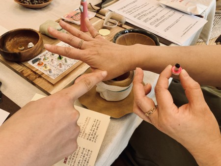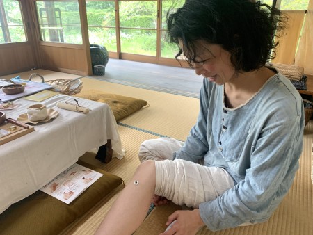 皆さん始めは難しそうにしていましたが、だんだんとコツを掴んできたのか、お灸とセットで行うことで楽になってきたのか、後半はとてもリラックスしてお灸を体験していただきました。