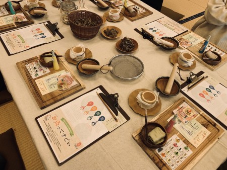 お灸ワークショップでは、よもぎをすり鉢でごりごりしてオリジナルのもぐさを作ってもらったり、お家で手軽にできるせんねん灸の使い方を覚えてもらったり、たっぷり2時間お灸とご自身のお身体と向き合っていただきました。