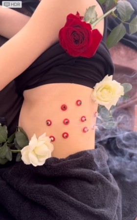 もぐさの香り。花の香り。果実の香り。森の香り。生理痛 月経困難症に対して、疼痛緩和をして穏やかな気持ちになれるように、せんねん灸で箱灸治療を致しました。ゴトウローズの香りが優しく痛みを包みます