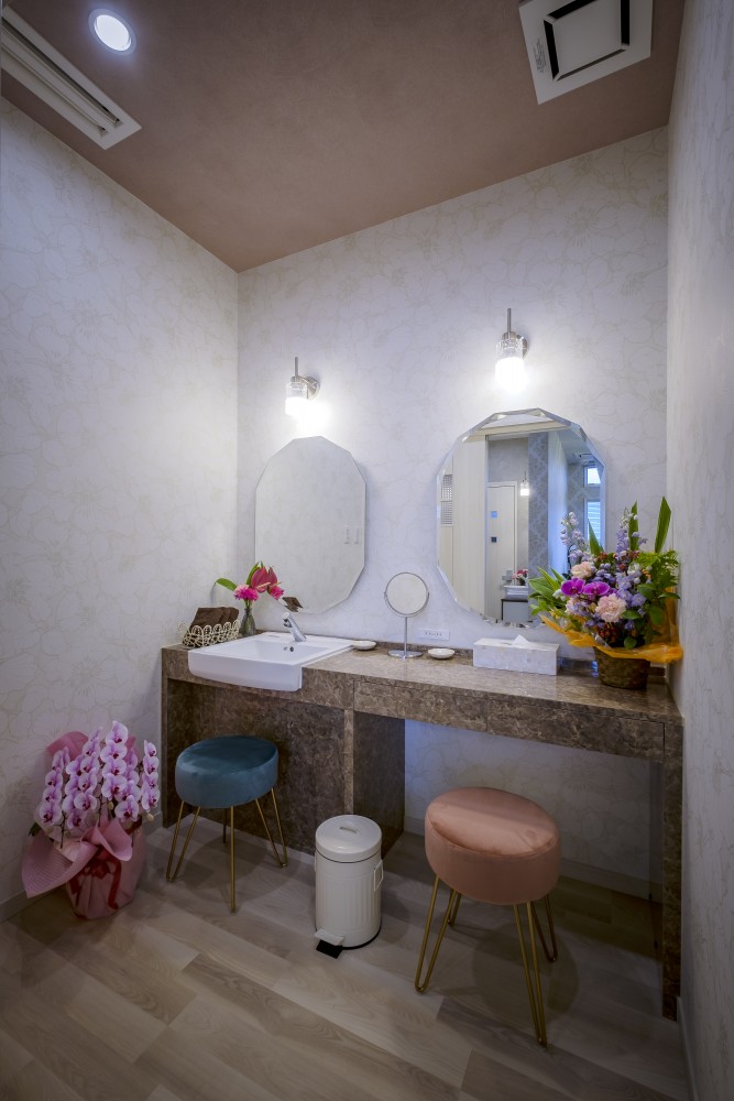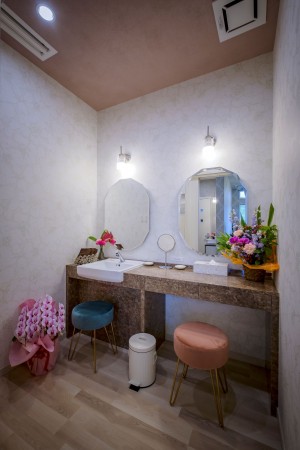 施術後のお出かけもスムーズ大人かわいいパウダールーム!