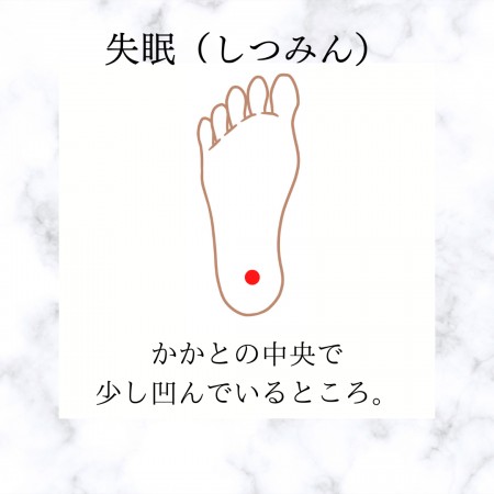 そんな時はかかとの真ん中にある「失眠(しつみん)」にお灸をするのがおすすめです。
