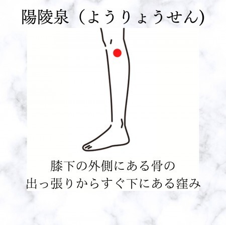 ■場所:膝下の外側。膝のお皿から指四本分下がったところ。