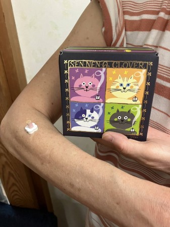 「熱くないです」とご体験者皆様最後まで施灸。ほんのり気持ち良い位ですとのことでしたが、お灸を外した後ほんのりピンク色になっている肌を眺めて熱が伝わっていたことを確認。