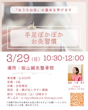 | 料金 | お灸教室料金 ¥2.000 |