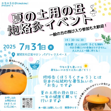 今年も夏の土用の丑の暑気払い。「焙烙灸(ほうろくきゅう)」体験イベントを開催します☆