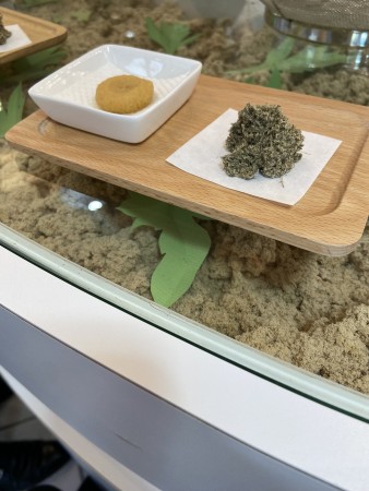 出来たもぐさを円錐形に整え、丸めた味噌の上に乗せて味噌灸タイム。ほんのり香ばしい味噌の香りに癒されてじんわ〜りあたたまります。本日のツボは「労宮」手の平、人差し指と中指の間、指を曲げて中指の先がつくあたりです。緊張緩和におすすめのツボです。