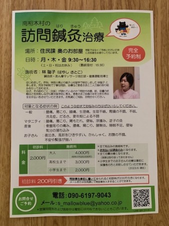 2022年秋、神奈川県より親子山村留学で移住し身近に自然や四季を感じられやすい環境で訪問鍼灸治療をスタートしました。