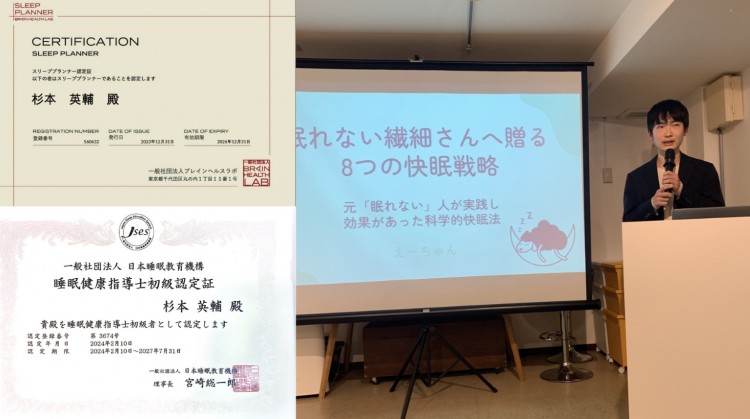 睡眠の専門資格「スリーププランナー」と「睡眠健康指導士」としての実績がございます。
