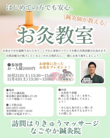 こんにちは、訪問はりきゅうマッサージなごやか鍼灸院、院長の浦田です。