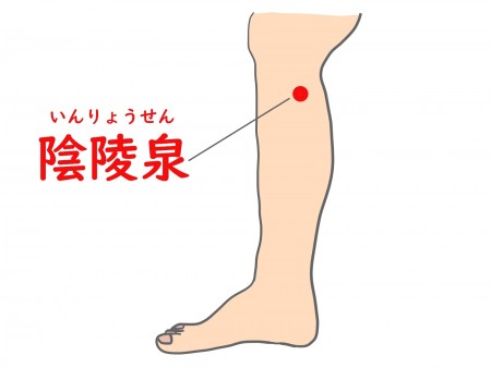 【陰陵泉/いんりょうせん】膝下の内側、骨の際にあるくぼみ