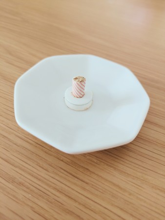 素焼きのお皿を頭の上にのせて、その上にお灸します。