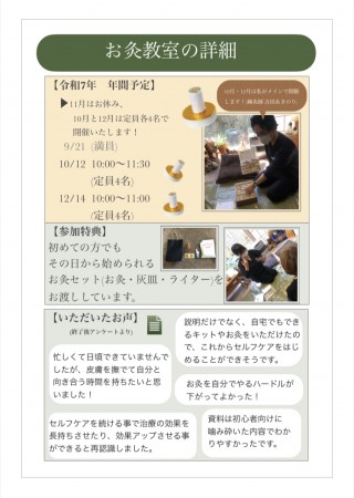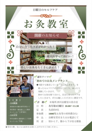 お灸教室は鍼灸師である妻と共に、皆さまご自身のセルフケアや東洋医学の中での暮らしに興味を持ってもらえるよう精進して参ります。