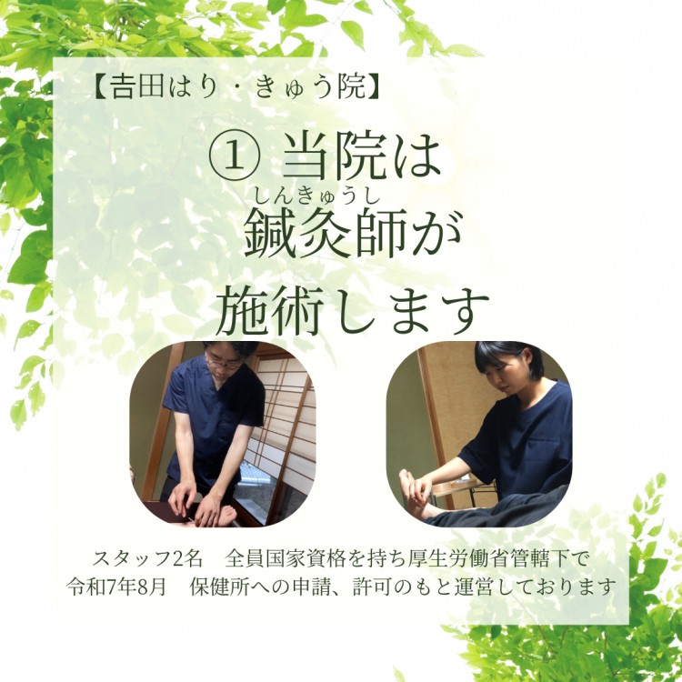 | 鍼灸院名 | 吉田はり・きゅう院 (よしだはり・きゅういん) |