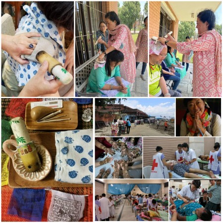 ネパール鍼灸ボランティア風景ネパール棒灸で背中や腰のコリを温めているところです