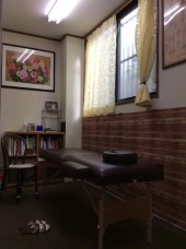 部屋の内装から看板にいたるまで、全て自分でてがけた、手作り鍼灸院です。